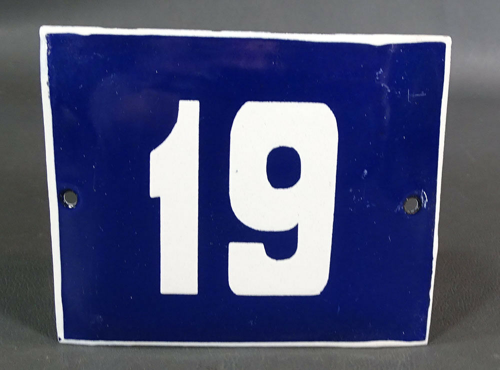 VINTAGE PORCELAIN ENAMEL TIN SIGN HOUSE STREET DOOR INDUSTRIAL NUMBER #19 BLUE