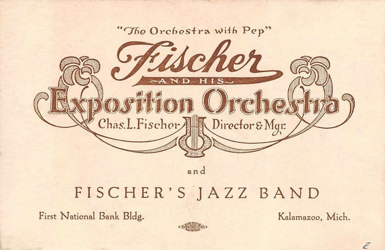 KALAMAZOO, MI, FISCHER ORCHESTRA & JAZZ BAND ADV BUSINESS CARD, IMAGE OF LEADER