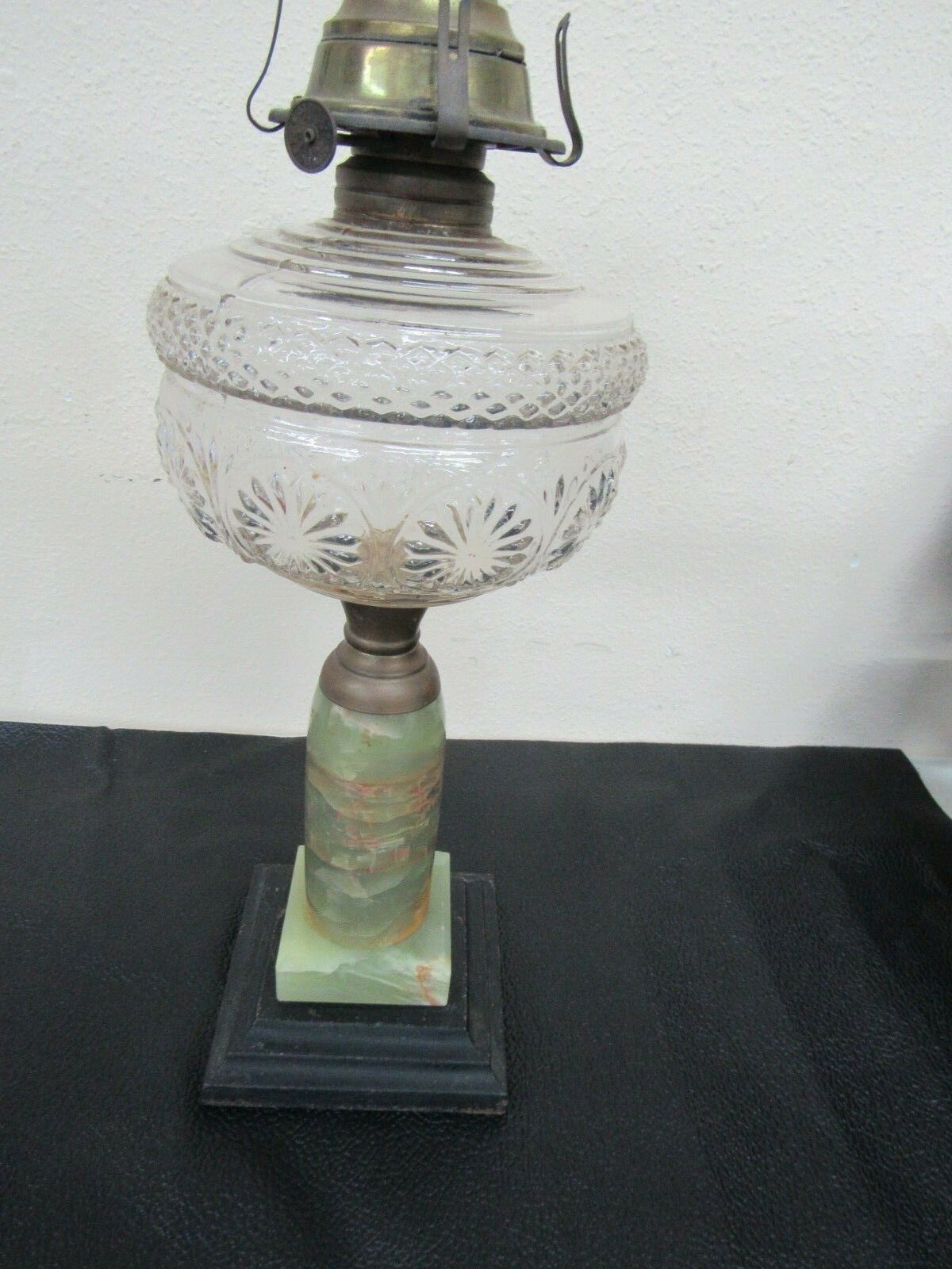 Antique Marble and EAPG Font Oil Lamp Metal Base