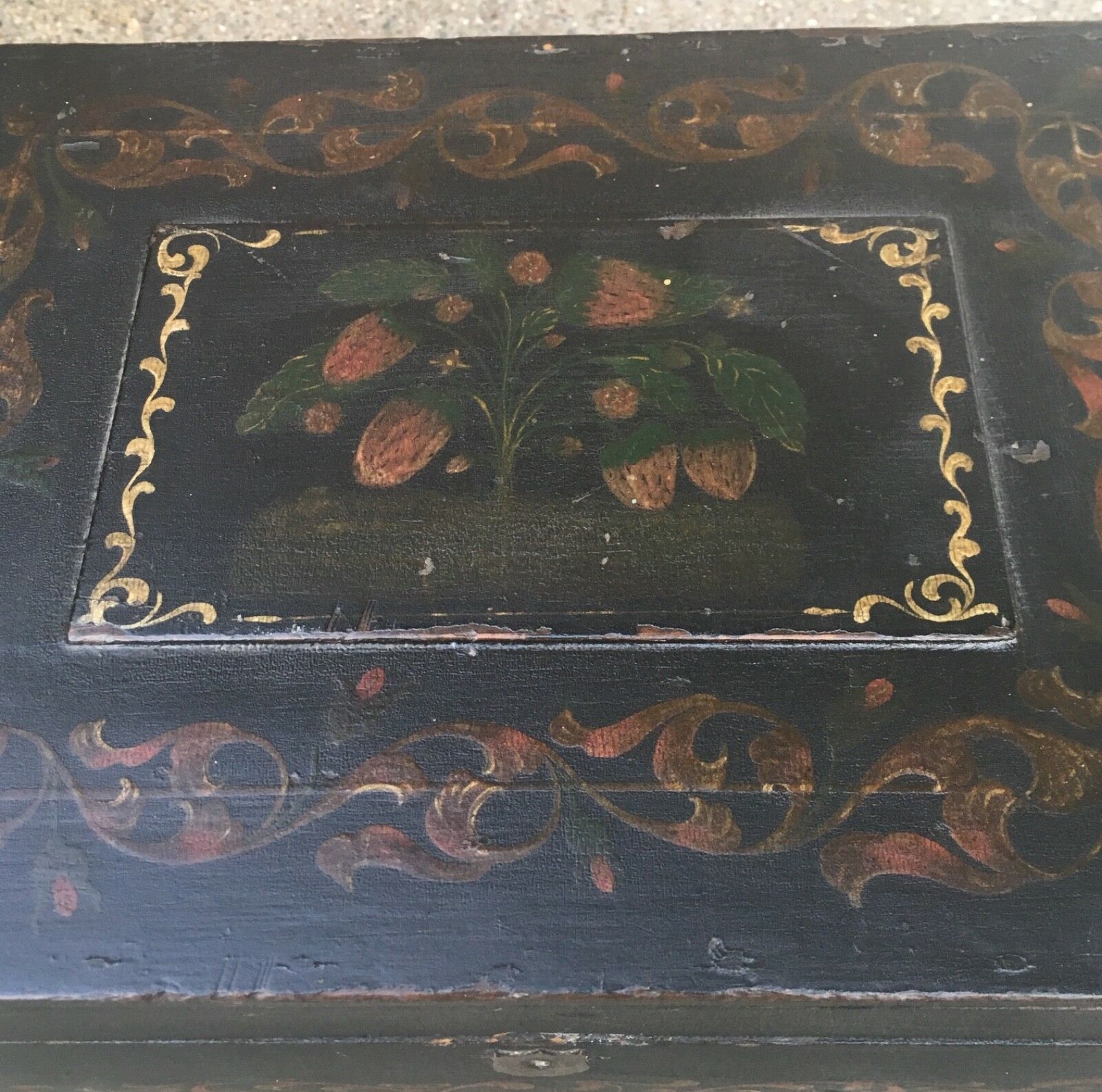Title (ebay affiliate link): Antique 19thc American Folk Art Painted Wood Stylized Fruit & Vines Hinged Box