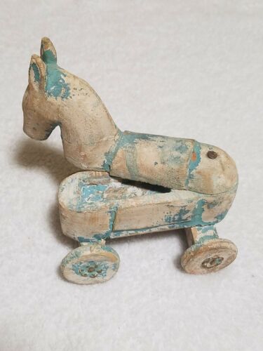 Title (ebay affiliate link): Vintage Wooden Horse Trinket Box, Hide E Hole, Horse On Wheels childs toy