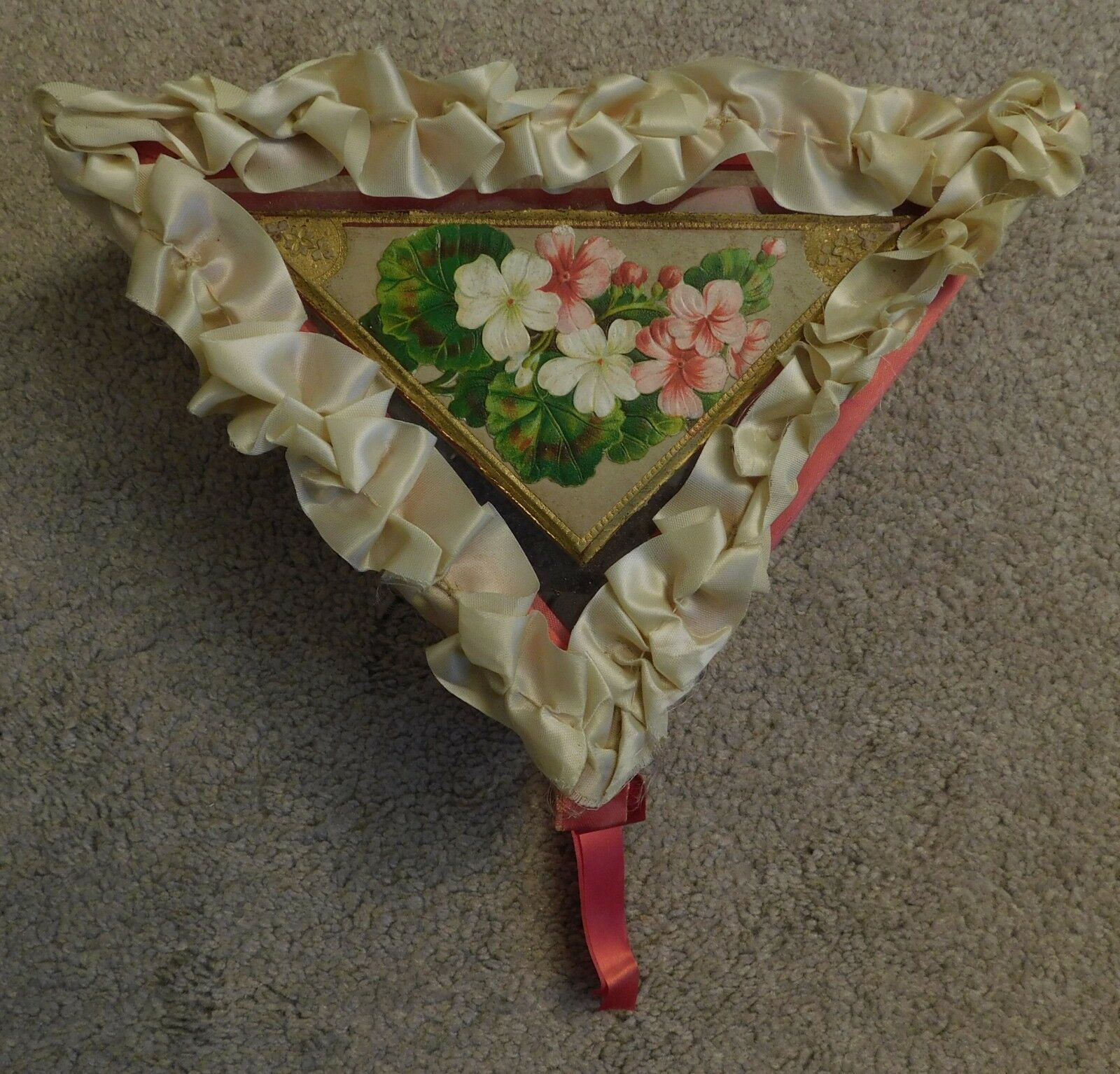 Title (ebay affiliate link): Antique hankie box made from glass with silk ribbon work. Flower design at top!