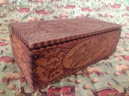 Title (ebay affiliate link): ANTIQUE WEBER''S FRESH CANDIES DECORATED WOOD CANDY BOX VINTAGE. BRASS HINGES.