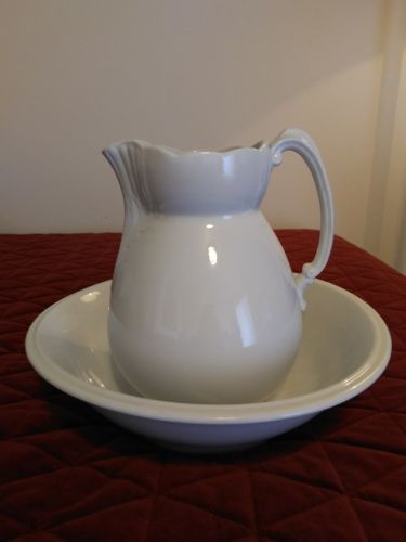 Title (ebay affiliate link): Antique Bowl And Pitcher, John Edwards "Hero" Ironstone, Knowles, T. & K. Basin