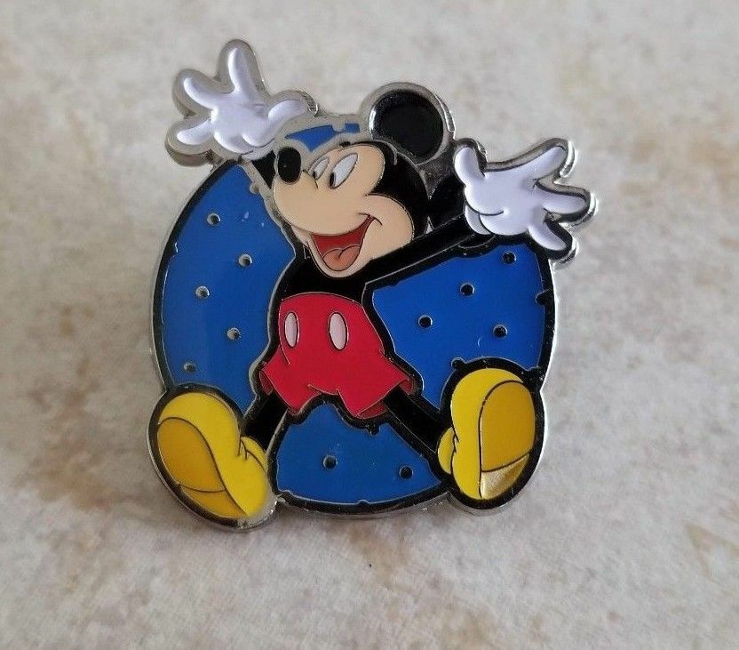 Title (ebay affiliate link): Pin Trading Disney Pins Monogram Inc Mickey Mouse Posing Blue Background