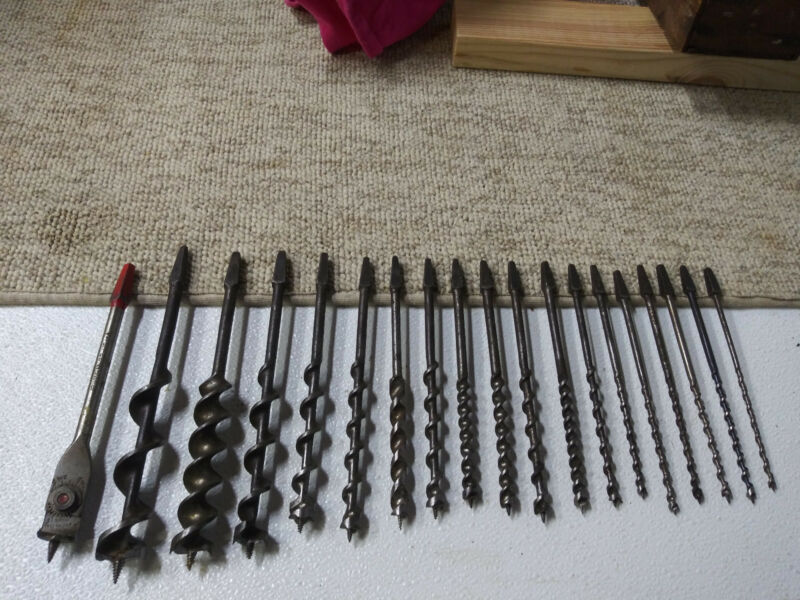 Title (ebay affiliate link): 19 Vintage Brace Drill Bit Set Auger Drill Bits Irwin Adjustable