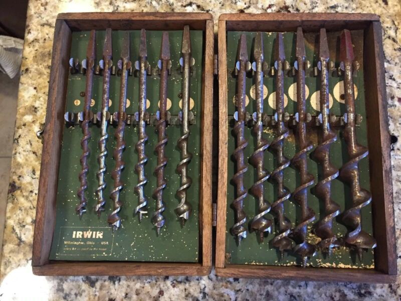Vintage 12 pc Irwin Auger Drill Bit Set in Wood Case 5/16 To 1 Inch