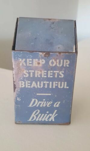 Title (ebay affiliate link): Vintage Drive a Buick Metal Trash Can Keep our Streets Beautiful.
