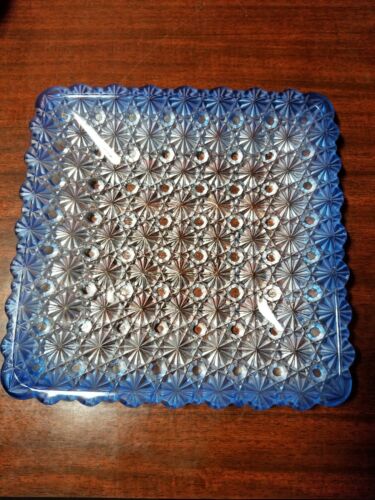 Vintage Depression Blue Glass snack tray dresser tray. 7" by 7"