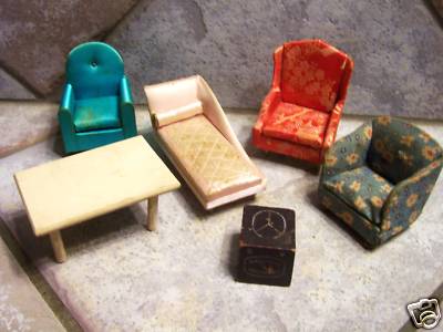 Title (ebay affiliate link): Antique/VIntage Wood @ Upholstered Doll House Furniture