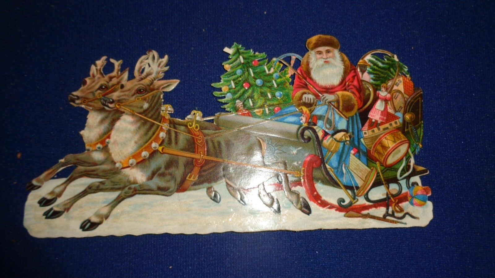 NIce Old Die Cut Santa and his Sleigh and Deer