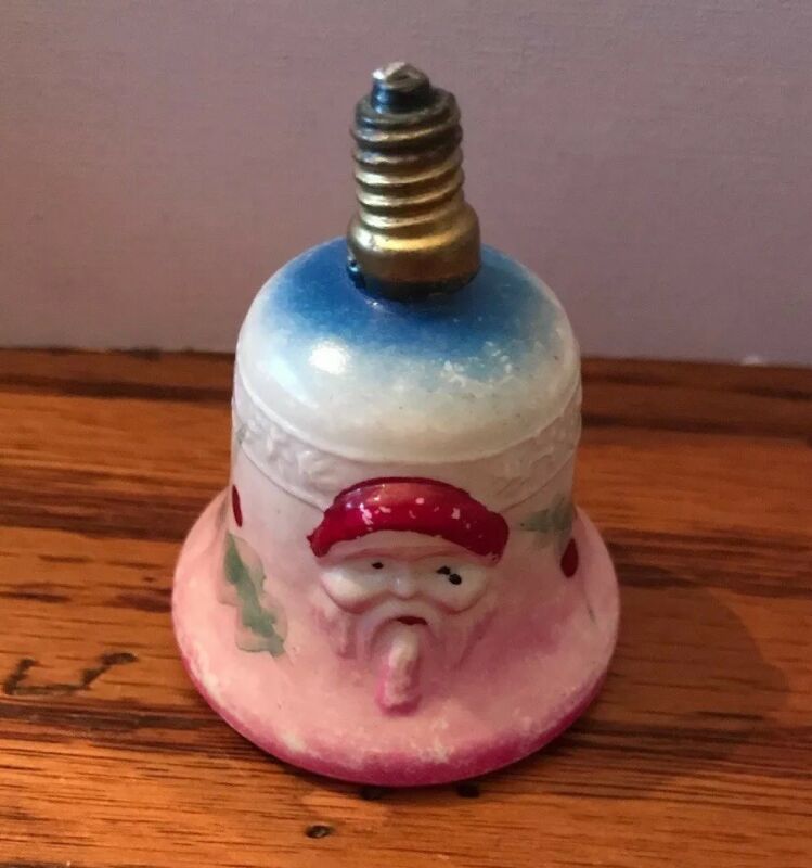 Title (ebay affiliate link): Vintage Christmas Two Face Santa on Bell Milk Glass Figural Light Bulb 14v