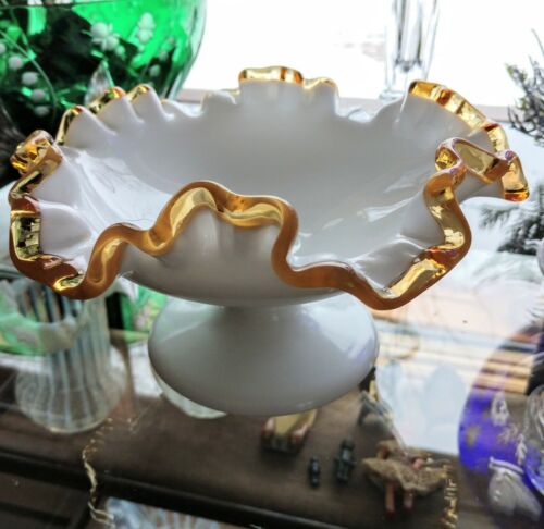 FENTON GOLD CREST MILKGLASS FOOTED COMPOTE