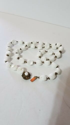VINTAGE SIGNED MIRIAM HASKELL WHITE MILK GLASS BEADS BEADED NECKLACE 28"