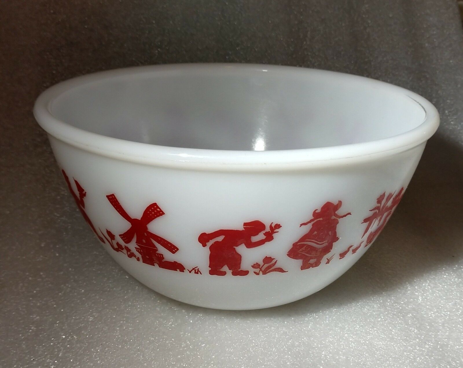 Vintage Red Dutch Windmill Hazel Atlas Mixing Nesting Milk Glass Bowl 3.5" x 7"