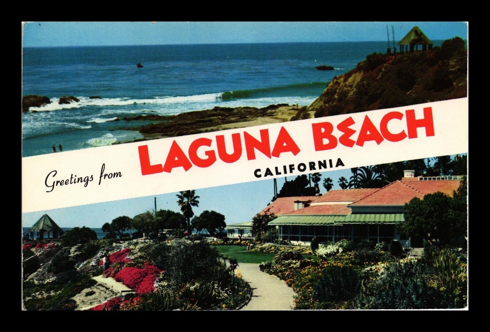 DR JIM STAMPS US GREETINGS FROM LAGUNA BEACH CALIFORNIA CHROME VIEW POSTCARD