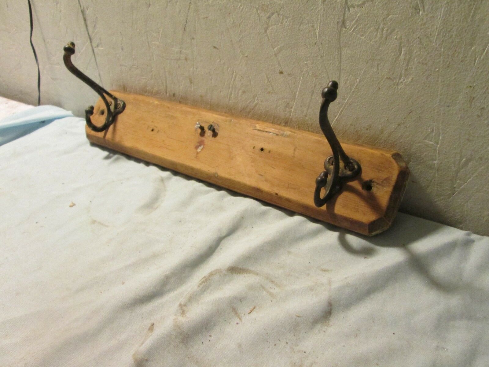 vintage wood clothes rack hat rack scarves 2 hooks antique primitive old..nice