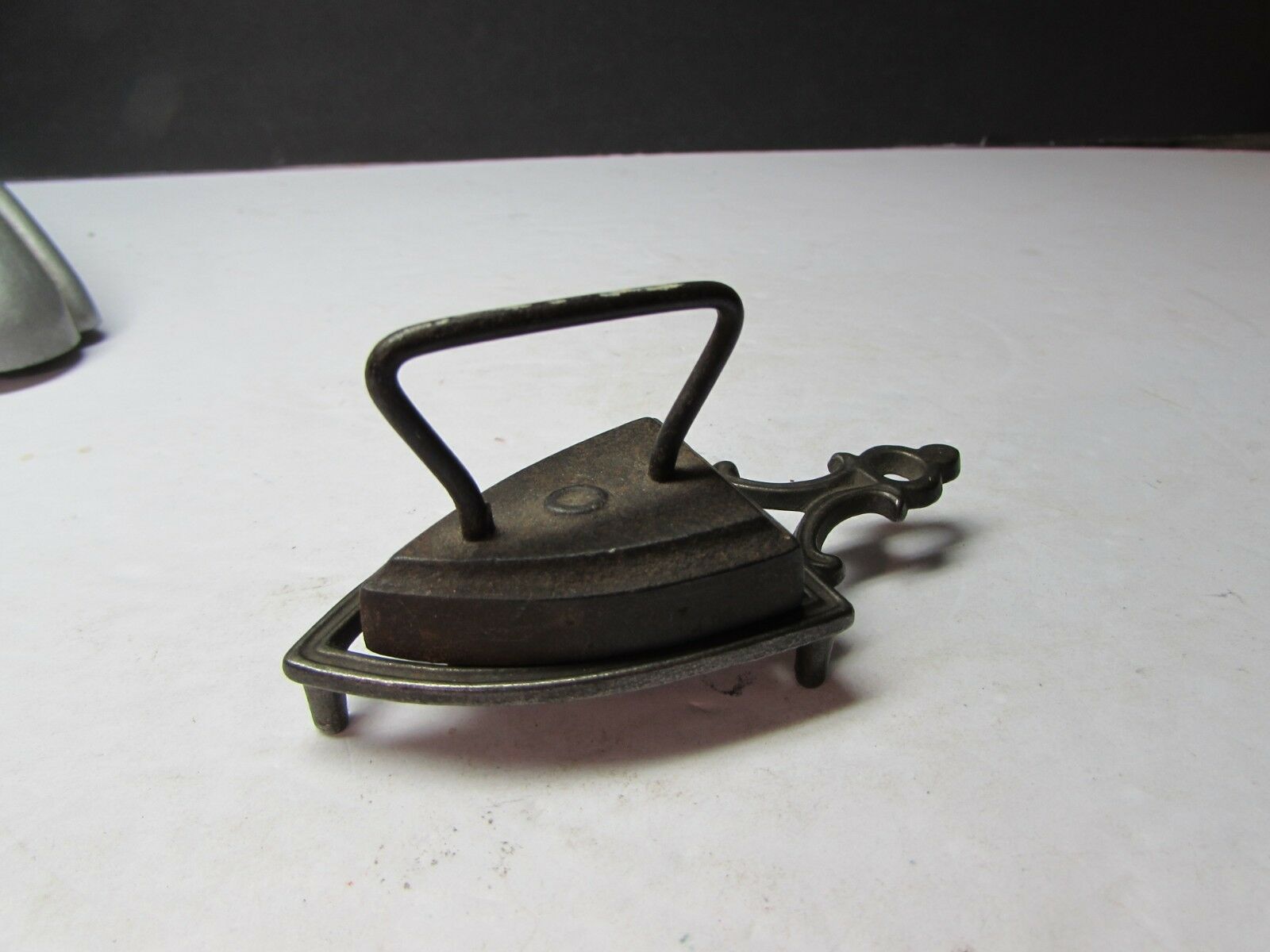 VINTAGE PRIMITIVE CAST IRON CHILDS TOY SAD IRON WITH STAND