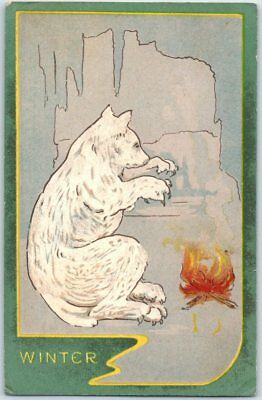 Vintage BEAR Postcard "Winter" Polar Bear in Ice Cave / Fire 1904 England Cancel