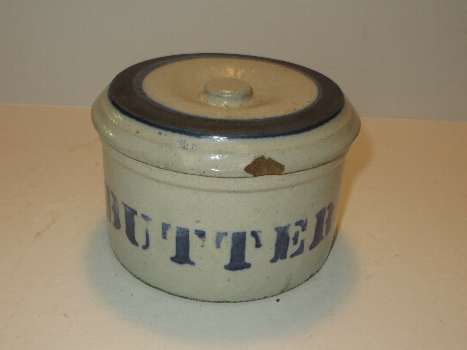 :) VINTAGE STONEWARE SALT GLAZED BUTTER CROCK WITH LID :)