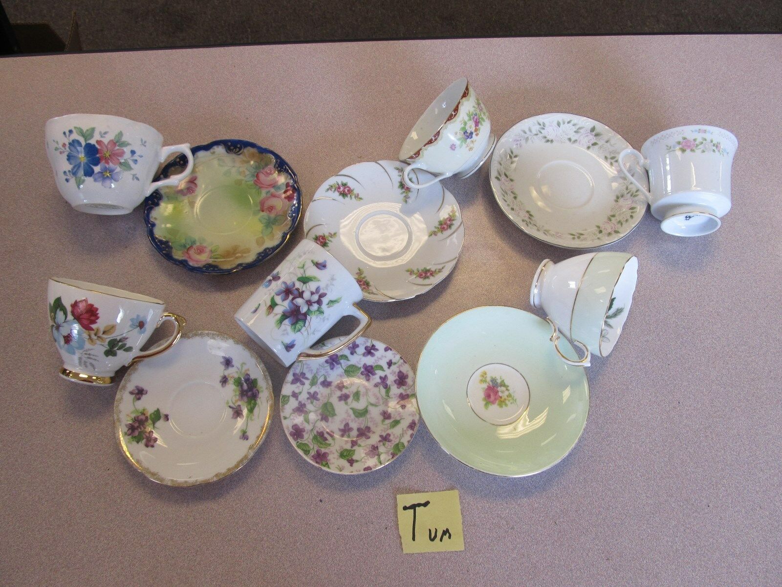 6 FANCY VINTAGE TEA CUPS/SAUCERS,BONE CHINA,NIKKO,DELPHINE,CROWN MING,SCHEFFIELD