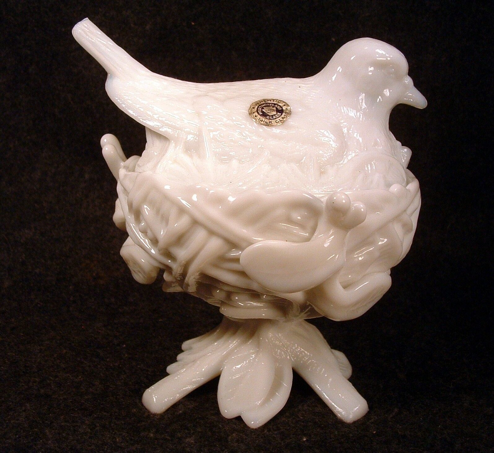 Vintage Westmoreland White Milk Glass Robin On Nest Candy Dish