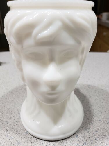 Milk Glass Victorian Woman Head Vase Vtg