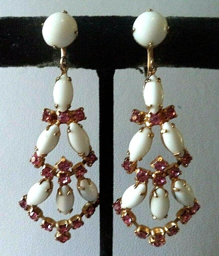 Title (ebay affiliate link): STUNNING VINTAGE ESTATE HIGH END MILK GLASS RHINESTONE 2.5" SCREW EARRINGS G398Q
