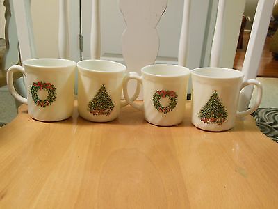 Title (ebay affiliate link): Vintage Salem NOEL Porcelle France Christmas Tree Wreath Milk Glass Mugs Cups