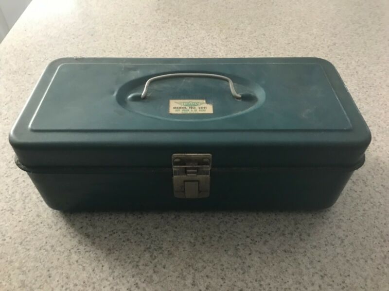 Vintage UNION STEEL CHEST utility tackle tool box, Model 2011, blue/green