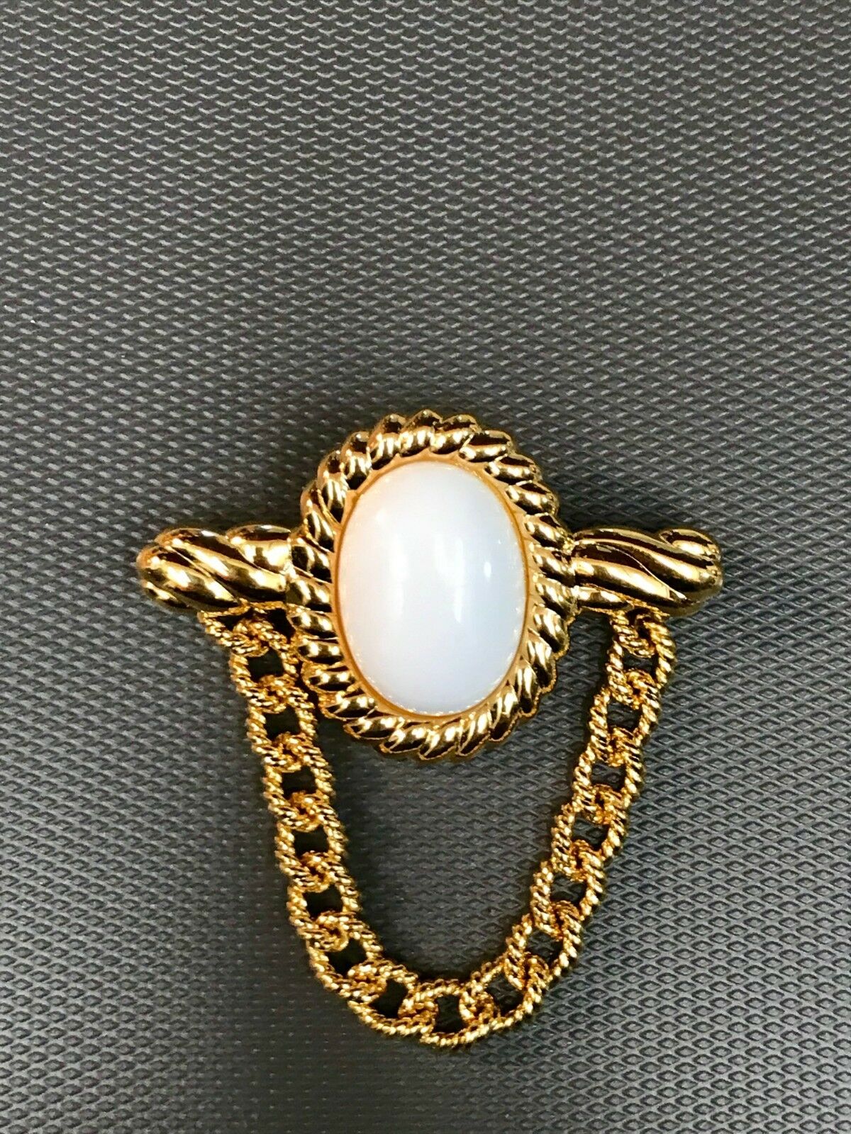 Title (ebay affiliate link): Vintage White Milk Glass Brooch Singed Monet