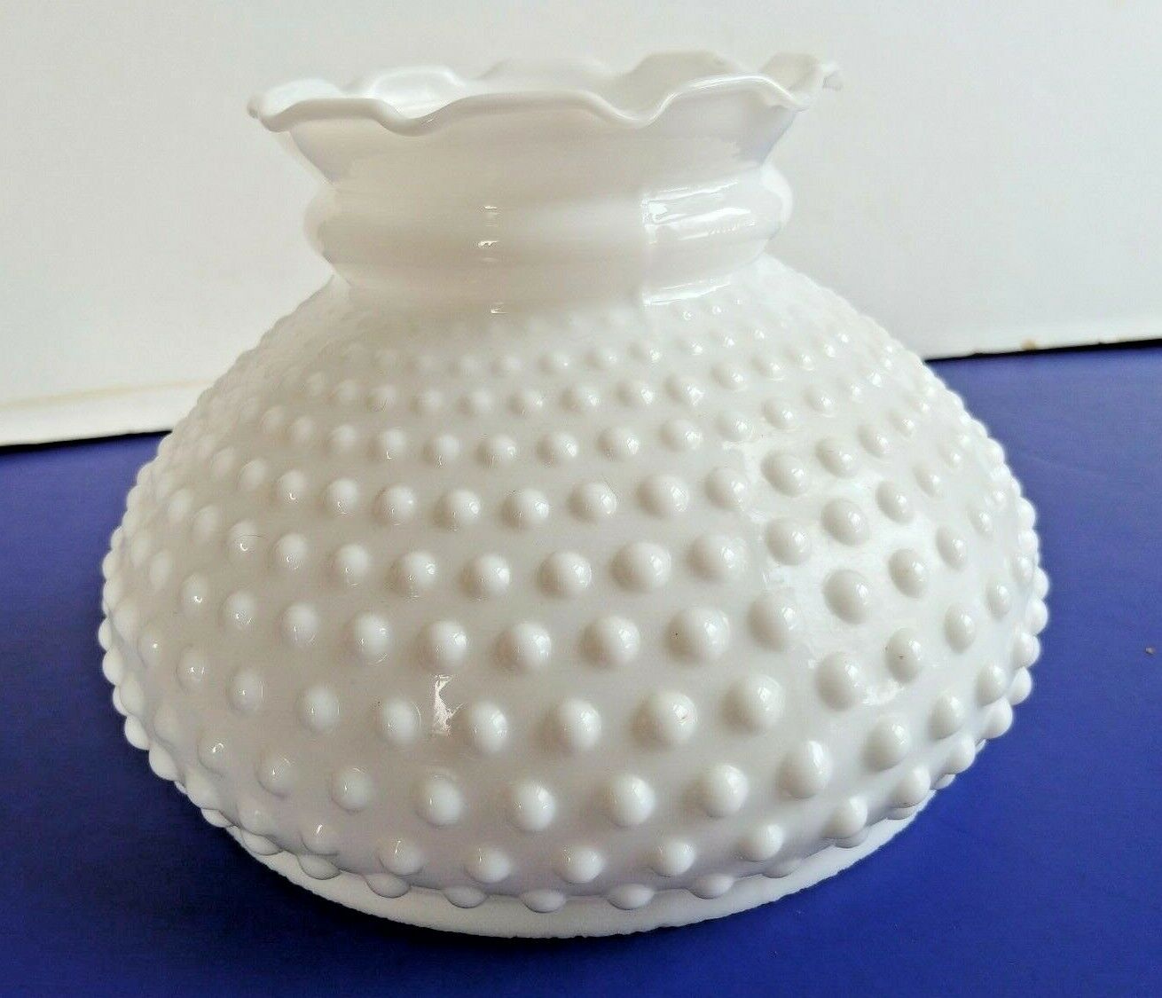 Vintage Hobnail Hurricane Student Lamp White Milk Glass Shade 6-7/8" fitter