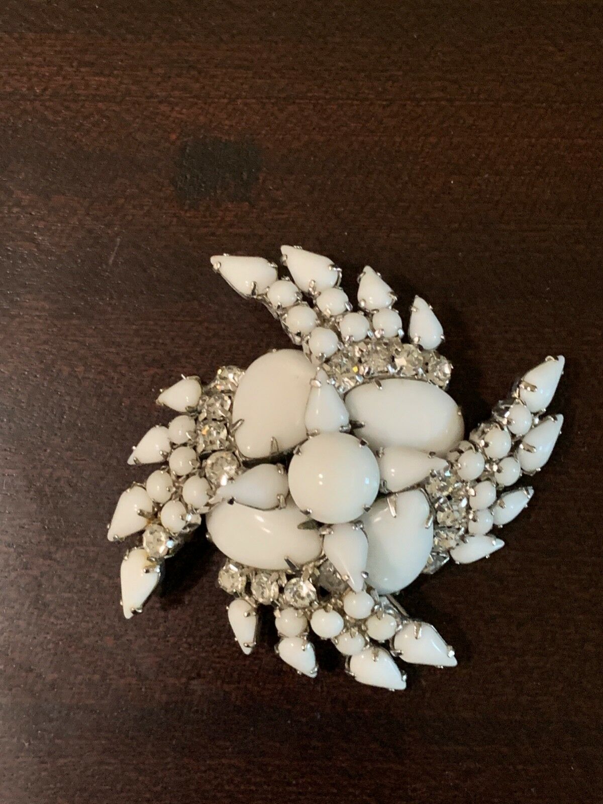 Title (ebay affiliate link): VINTAGE SIGNED KRAMER OF NEW YORK MILK GLASS AND RHINESTONE BROOCH