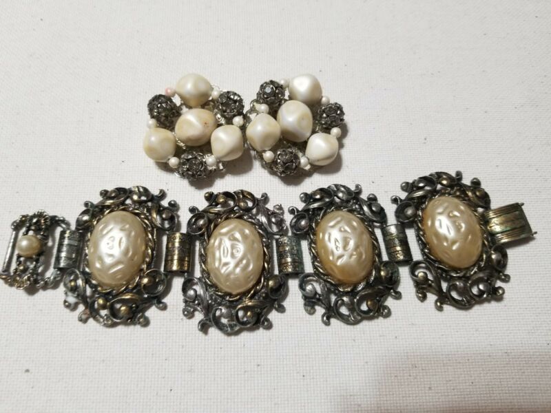 STUNNING VTG WHITE MILK GLASS ?? BRACELET EARRINGS SET
