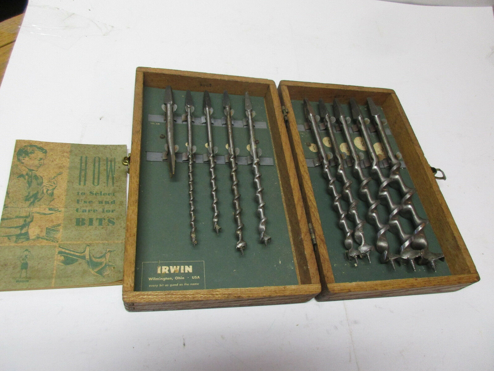 Title (ebay affiliate link): Vintage Irwin Set of 10 Vintage Drill Auger Bits in Wood Case w Booklet