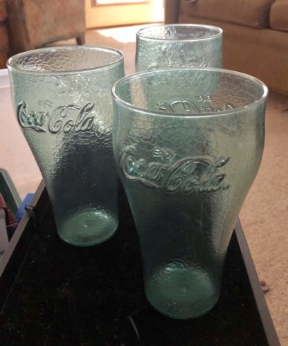 Title (ebay affiliate link): 3 Green COCA COLA Plastic Tumbler Glass by DIXIE crackled vintage look