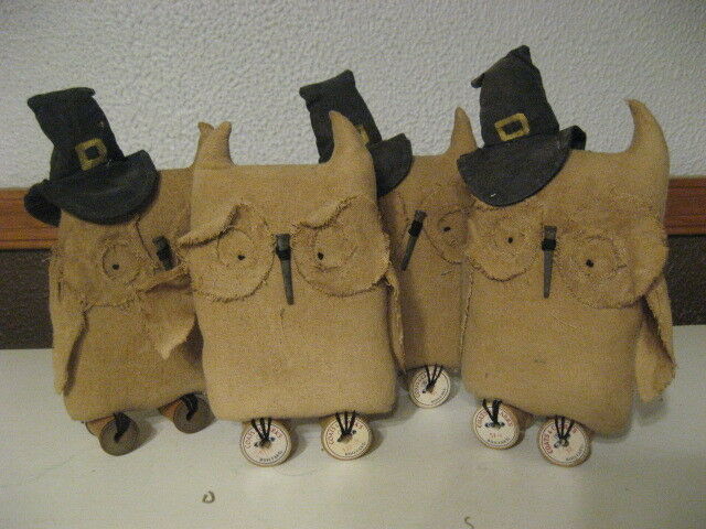 Primitive Set of 4 Owls Fall Thanksgiving 3 with Pilgrim hats