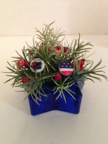VTG Button Bokay/Blue Glass Star-USA-July 4th-Americana-Military-Patriotic-Prim