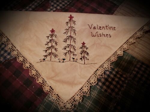 Title (ebay affiliate link): ~*Awesome~* Primitive "VALENTINE WISHES" Hand Stitched Doily! Oh My!