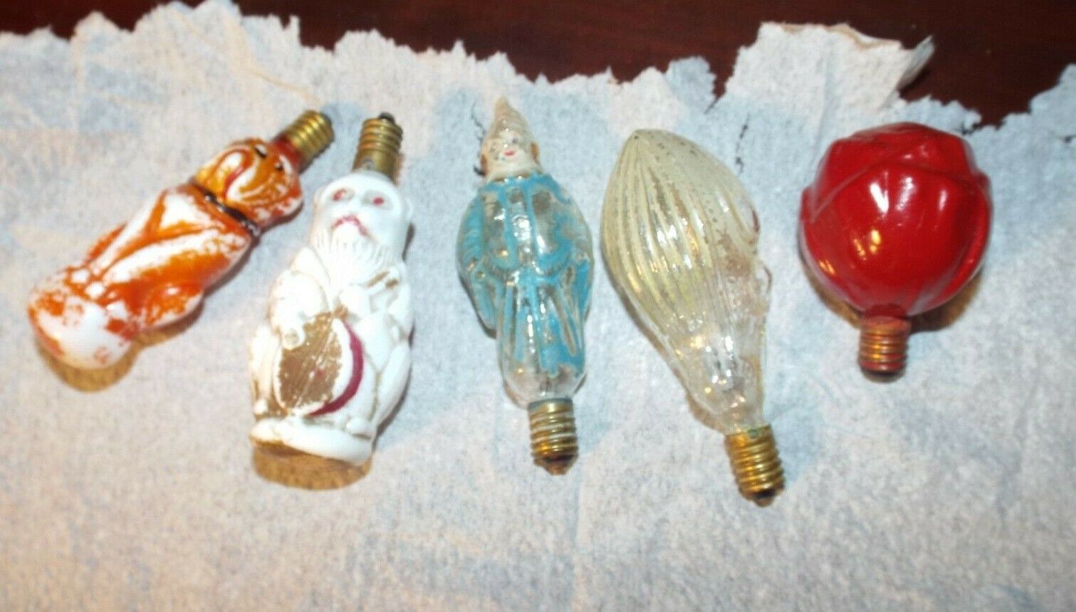 Title (ebay affiliate link): 5 Antique GLASS ELECTRIC CHRISTMAS LIGHT BULBS Dog, Monkey, Clown, Frog, Rose