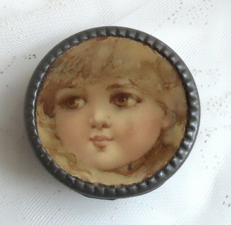 Little Antique Tin Celluloid ANGEL FACE Mica Snowflakes Glitter Inside Christmas