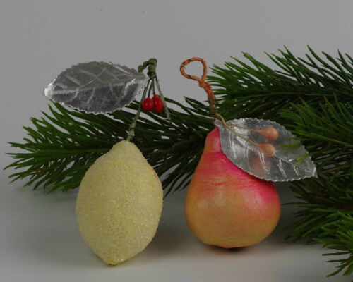 2 x Vintage Spun Cotton Christmas Ornaments,Pear,Lemon