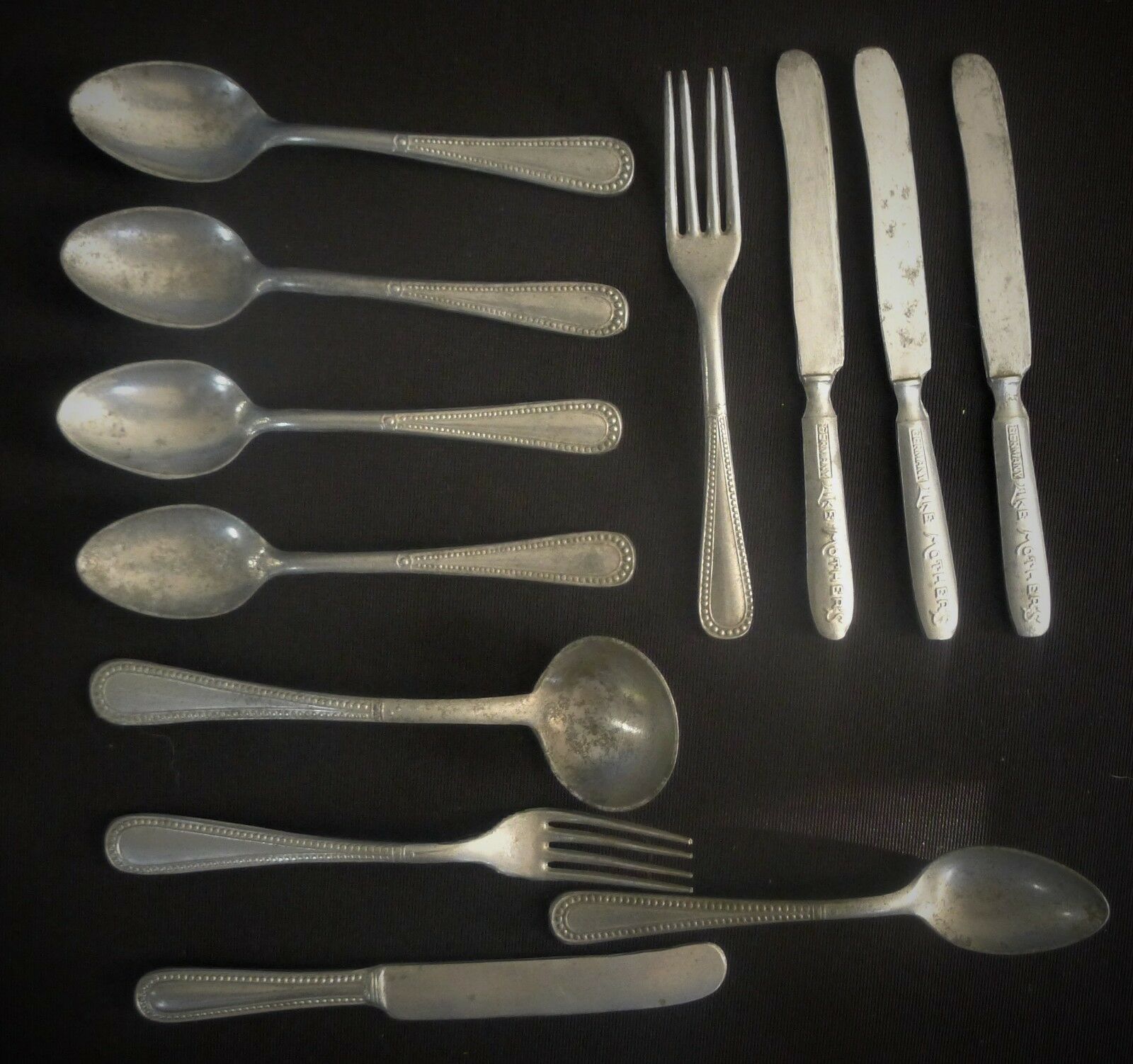 12 PC Vintage LIKE MOTHER''s GERMANY Aluminum Childrens Toy Flatware Utensils Set