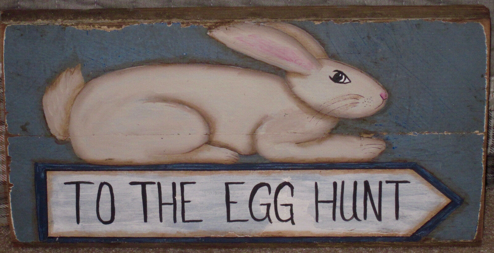 Title (ebay affiliate link): *~*PRIMITIVE*~* HP FOLK ART PRIM BUNNY * TO THE EGG HUNT *~* OLD RECLAIMED WOOD