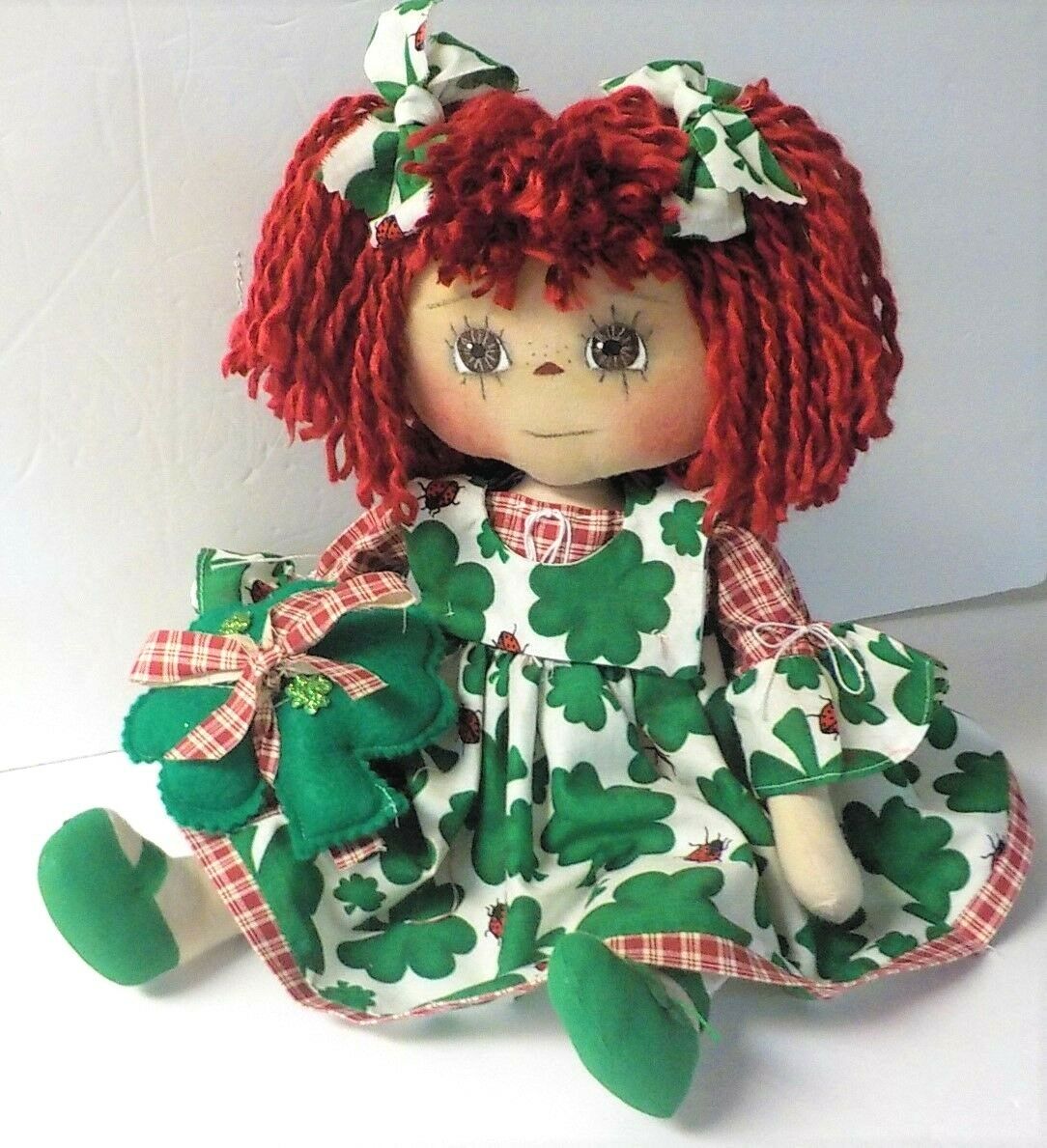 Title (ebay affiliate link): Primitive Handmade Raggedy Ann Doll IRISH LADYBUGS SHAMROCK ORNIE "KATHLEEN"