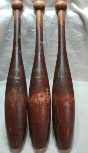 THREE SPALDING GOLD MEDAL INDIAN CLUBS EXERCISE JUGGLING OLD VINTAGE CIRCUS