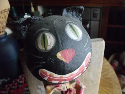 Primitive Vintage Hand Made & Painted Black Cat Gourd Rattle Americana Folk Art