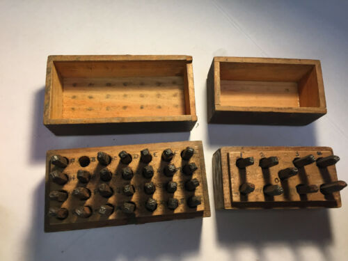 Antique Metal Stamping Die Sets Letters & Numbers in Wood Boxes Nice NO RESERVE