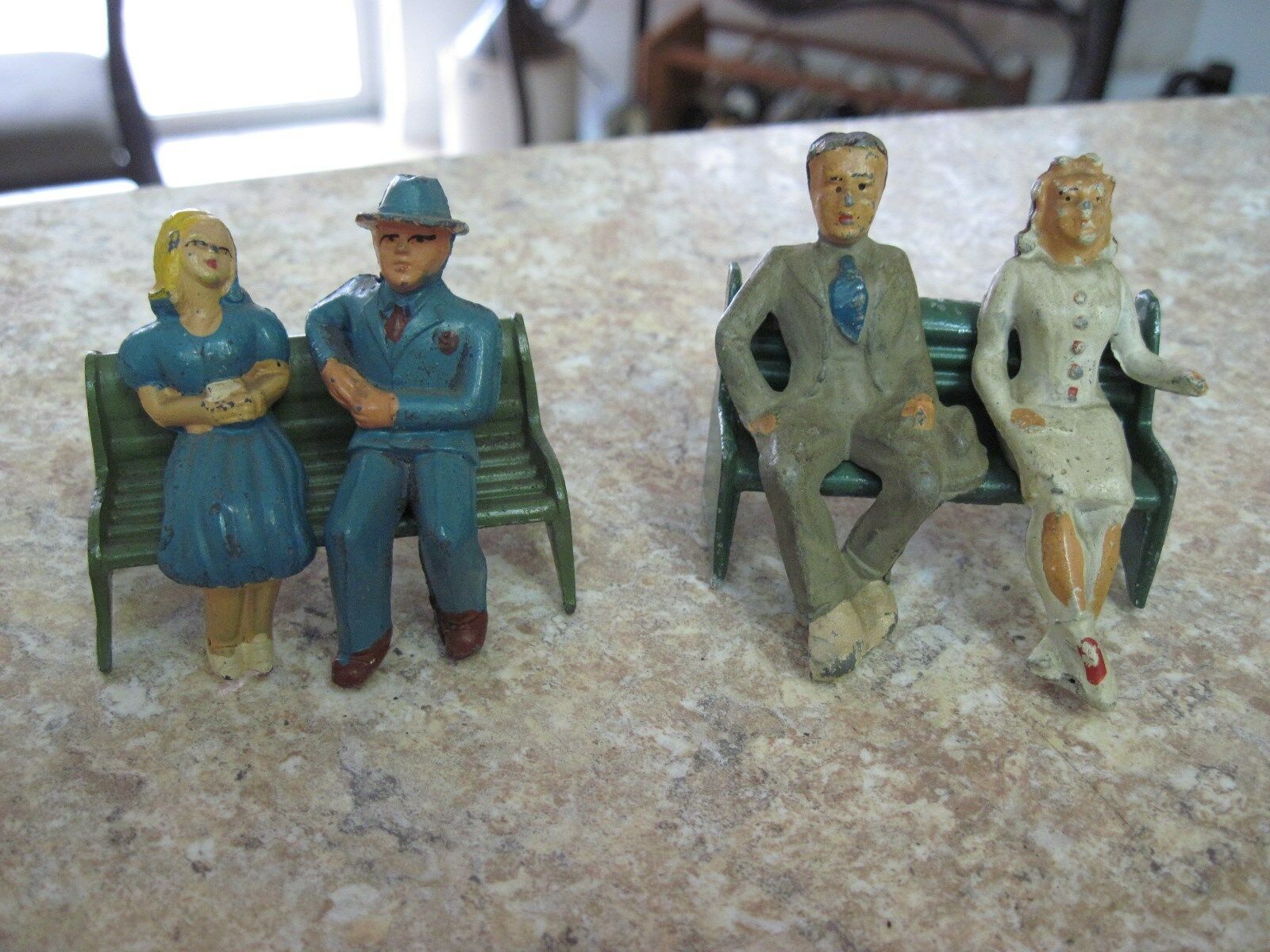 Title (ebay affiliate link): Pair of Vintage Antique Barclay Lead Couple on Bench for Train or Winter Scene