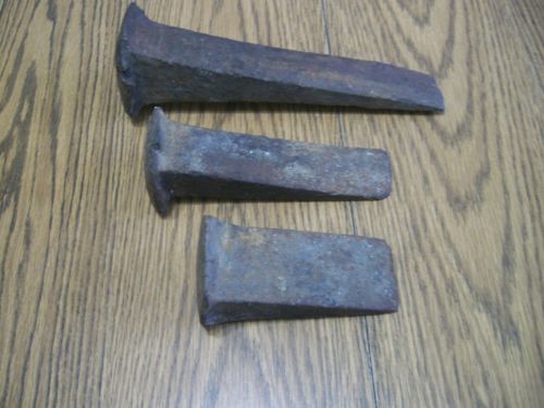 LOT OF 3 ANTIQUE LOG SPLITTER WEDGE WEDGES MAUL IRON TOOL FIREWOOD AXE